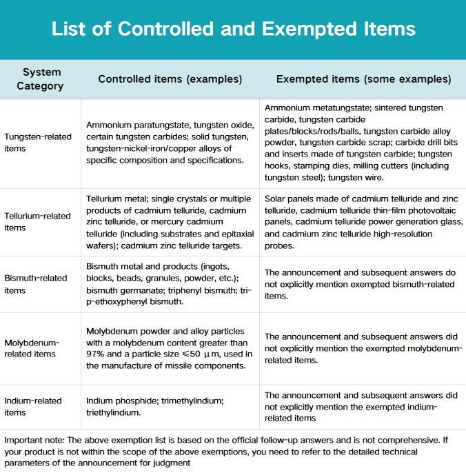 Among the controlled items listed, tellurium-related entries have drawn significant attention from the photovoltaic industry, primarily falling into three categories: