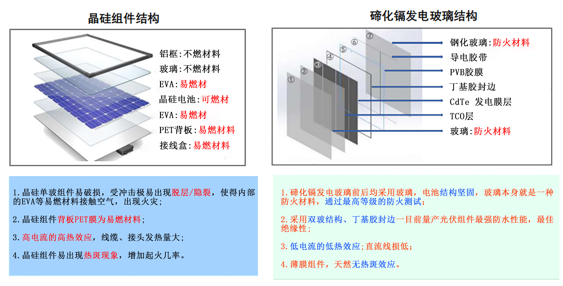 碲化镉发电玻璃核心材料本身即为A级不燃材料(严格符合国际EN13501及国标GB/T8624最高等级认证)。
