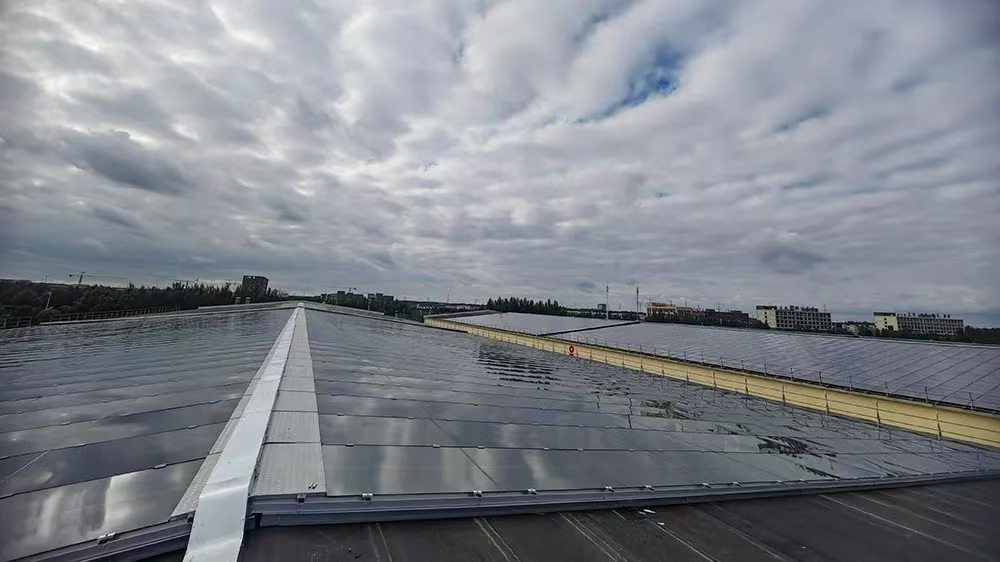 光伏充电站/智慧停车棚: 顶棚采用半透光碲化镉组件,兼顾遮阳避雨、自然采光与清洁发电,结构轻巧,可直接为充电桩供电或并入电网。