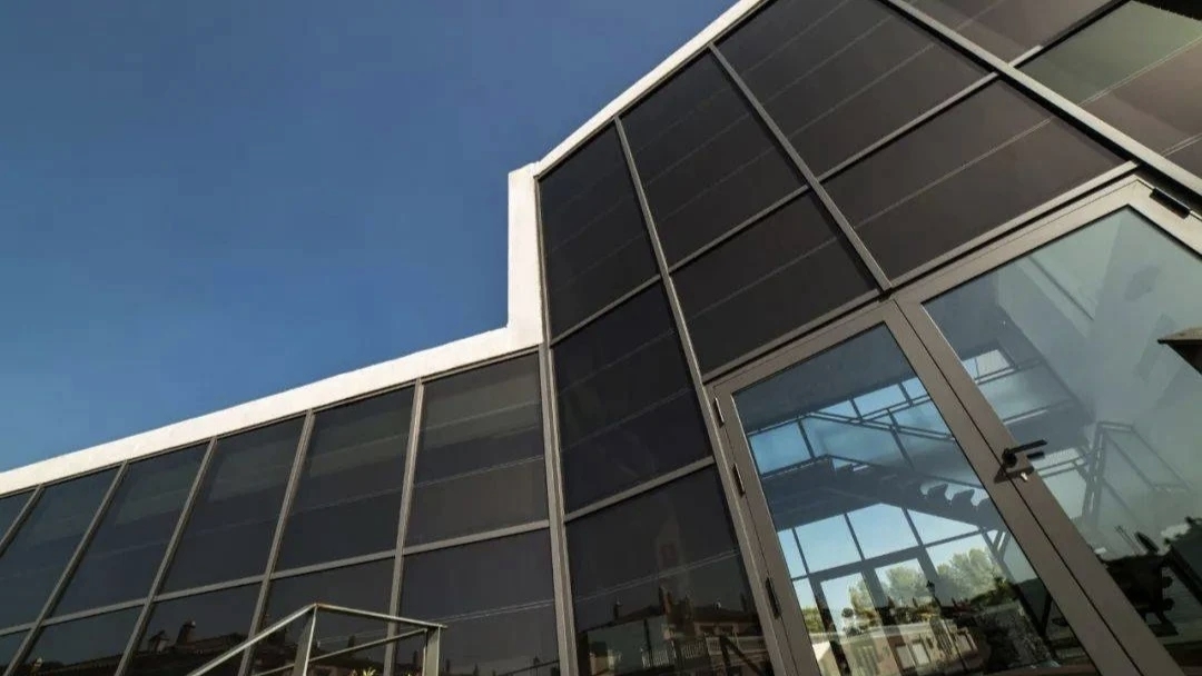 装在建筑外立面,接近高档深色玻璃幕墙的视觉效果,室内采光充足,看室外比较清晰(比20%透亮)。既能保持建筑的通透感和现代感,又能持续发电。