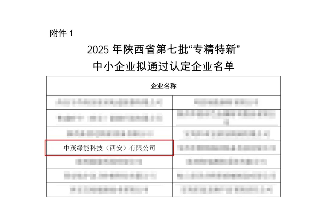 中茂绿能科技(西安)有限公司凭借其在专业化、精细化、特色化、新颖化方面的综合实力及突出的创新能力,成功入选陕西省“专精特新”中小企业,标志着公司在创新驱动与高质量发展道路上获得了省级权威认可。